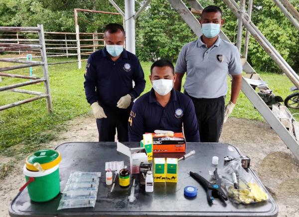 เมื่อวันที่ 30 พ.ย. 67 บก.ทท. (นทพ.) โดย นกส.4 สทพ.นทพ. ดำเนินการผสมเทียมโคแม่พันธุ์ของหน่วย จำนวน 1 ตัว คือ โคแม่พันธุ์หมายเลข 746403 โดยใช้น้ำเชื้อแช่แข็งของ นทพ. สายพันธุ์อเมริกันบรามันส์แดง พ่อพันธุ์ชื่อมังกรแดง หมายเลข 096 ล็อตที่ 23.314 เพื่อสนับสนุนแจกจ่ายโคลูกผสมให้กับเกษตรกรตามแผนงานโครงการส่งเสริมการเลี้ยงโคเนื้อของ นทพ. ต่อไป ณ คอกกรรมวิธี นกส.4 สทพ.นทพ. ต.สลุย อ.ท่าแซะ จว.ช.พ.